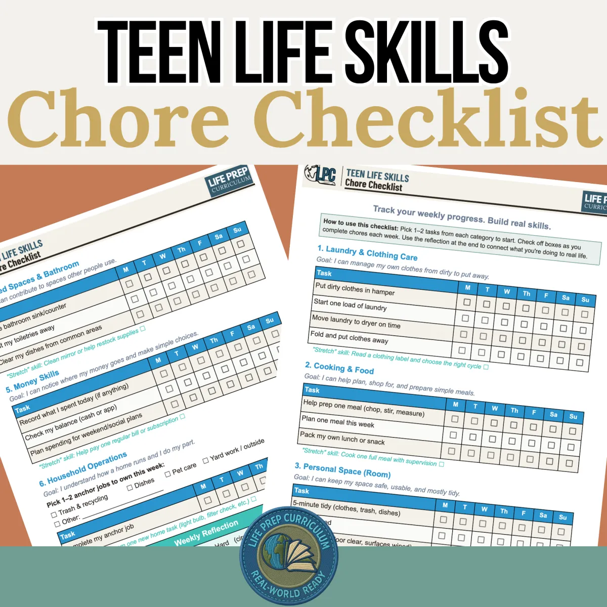 The Teen Life Skills Chore Checklist includes: